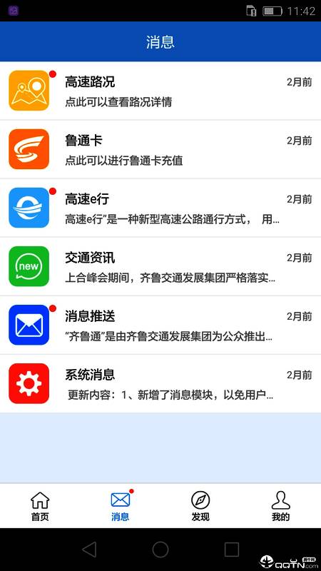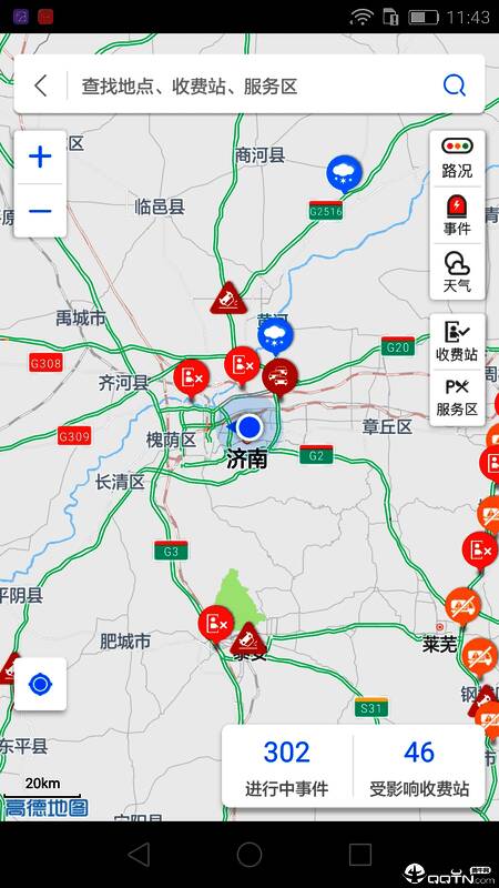 “齐鲁通”APP具备全省高速公路实时路况、高速服务信息、路况导航和路费查询等功能,设有鲁通卡、出行服务、路线规划、导航服务、事故报警、高速服务及违章查询等业务模块。