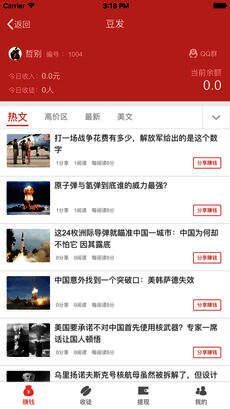 想通过豆发转发文章赚钱,先打开豆发APP,在主页能看到热文推荐、高价区文章和最新美文,选择浏览文章,浏览完点击转发即可获得收益。
