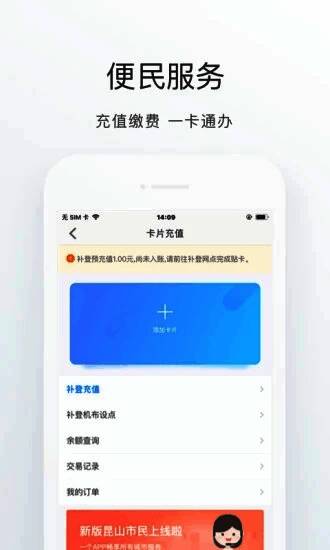昆山市民app是由昆山市民卡有限公司开发并推出的本地综合服务app,可应用于公共交通、公用事业、购物休闲、图书馆应用、电子门禁等多个领域。它功能齐全,涵盖买汽车票、公交云卡、卡片充值、定制卡片、公交线路查询、服务网点查询、交易记录查询、今日特惠、汽车票代售等功能,真正实现一码通行,是市民生活各方面的贴心伴侣。