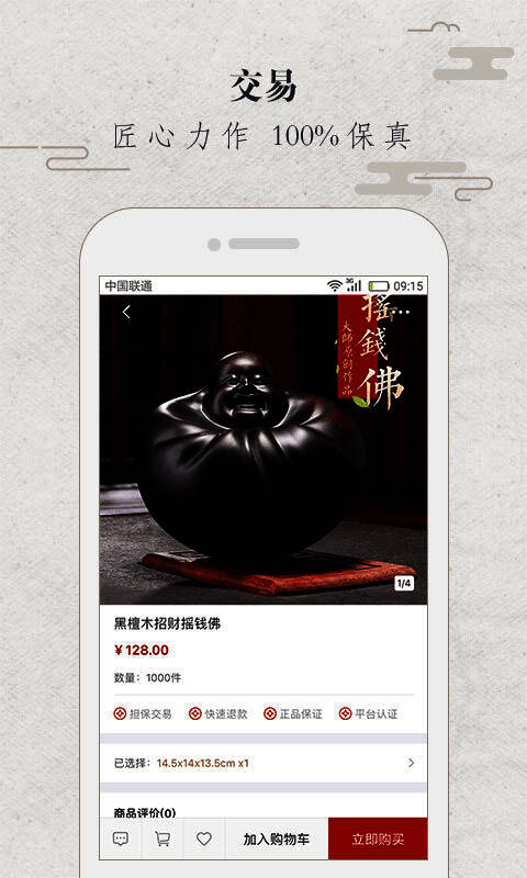 1. 匠人可在平台开店销售、分享作品,借助新的互联网玩法展示、传播和出售,作品经申请资历认证及知识产权认证能获有效保护。