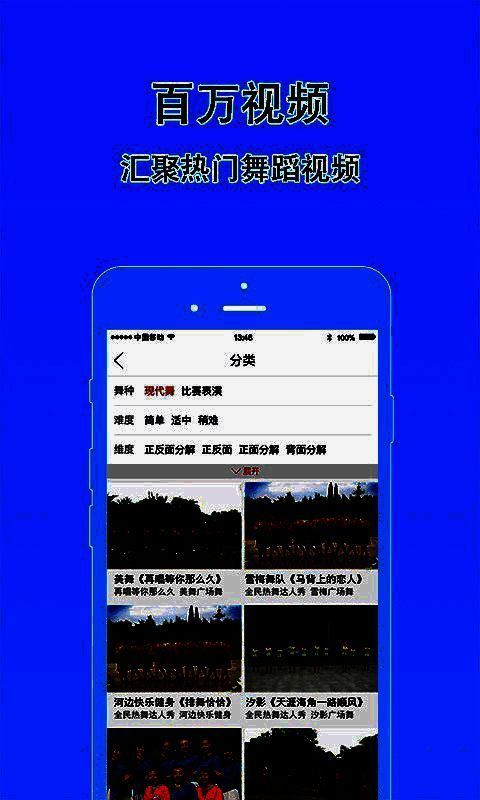包含双人舞、健美操、水兵舞、三步踩、32步、16步、恰恰、变队形、步子舞、扇子舞、DJ、瑜伽、形体舞、鬼步舞、交谊舞、古典舞、佳木斯、兔子舞、排舞、秧歌、印度舞、傣族舞、新疆舞、经络操、街舞、肚皮舞、手绢舞、藏族舞、探戈、桑巴、伦巴、吉特巴、民族舞、拉丁舞、现代舞、交际舞、爵士舞等丰富类型!