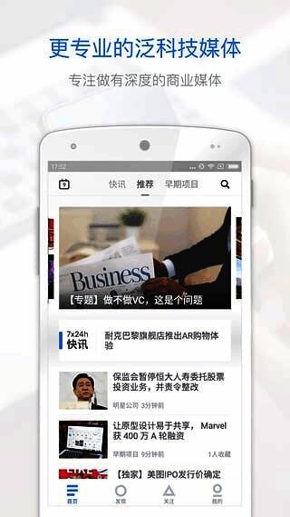 36氪app是36氪推出的手机app,36氪app中有非常多热门的资讯,而且和众多公司的合作,让36氪app中的数据非常的丰富,页面的风格也是别有特点。