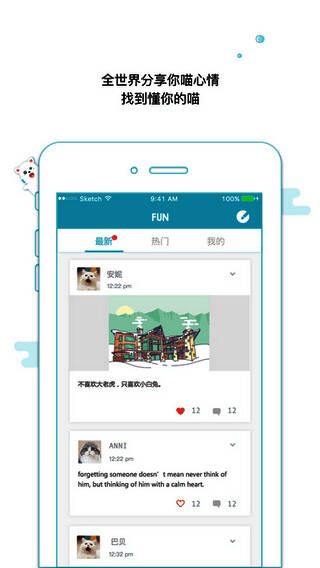 《随喵》是一款别具一格的社交聊天软件,在这儿你会化身为喵,去倾听或诉说自己与他人的故事。在这个平台上,没人知晓你的姓名和长相,一切只为纯粹聊天。感兴趣的朋友赶紧下载体验吧。
