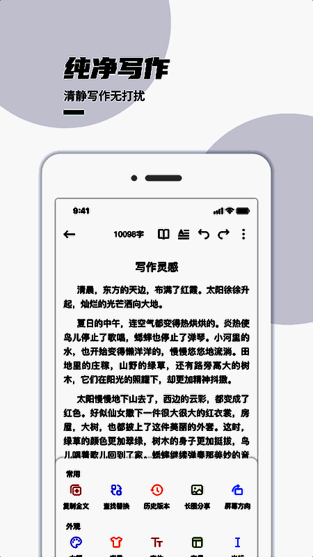 口袋写作是专为小说爱好者打造的写作助手。其界面简洁,操作方便,运行流畅。用户能自由切换字体、颜色、大小和背景设置,营造舒适的写作环境。最新版本有众多写作模板可供参考,新增多种阅读模式,支持目录跳转、风格选择、夜间模式和长图分享功能,点击即可分享内容,让写作更轻松。