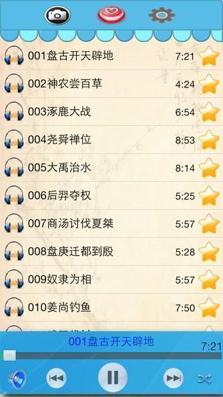 3、可进行收藏操作,能设置播放时间和播放模式;