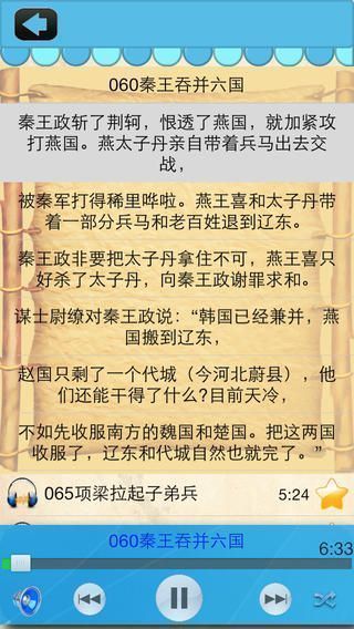 从盘古开天辟地的传奇,到炎黄统一华夏大地,再到秦王统一六国称帝,直至汉末三国的割据鼎立,这些广为人知的历史故事,皆是中华文明五千年来的闪耀成果。《中华上下五千年》汇集了从盘古开天辟地直至近现代五四运动期间的重要历史故事,通过有声朗读的方式,让用户能轻松阅读并了解历史。