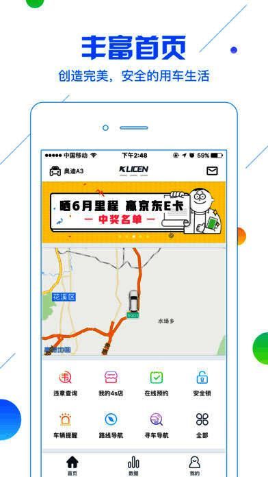 4. 【用车服务】:支持违章查询与处理、洗车服务、在线预约 4S 店服务、代驾服务、周边服务。