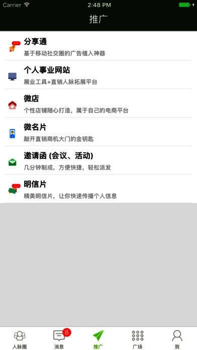 《直销人》是一款专为直销人士打造的专业运作软件。它让直销工作变得更加轻松简单,用户能与客户互相留言、即时通讯,还可进行团队管理、查看人脉圈,并且能够生成会议邀请函。该软件支持顾客留言、查找人脉、团队管理、访客痕迹等功能,还能生成微名片、微网站、行销系统、招商单页,适合广大直销人士使用。