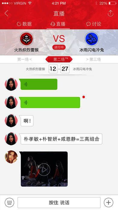 2、语音直播:独家主播通过语音、文字、图片全方位直播比赛战况,让你身临其境,既省流量又不卡顿。