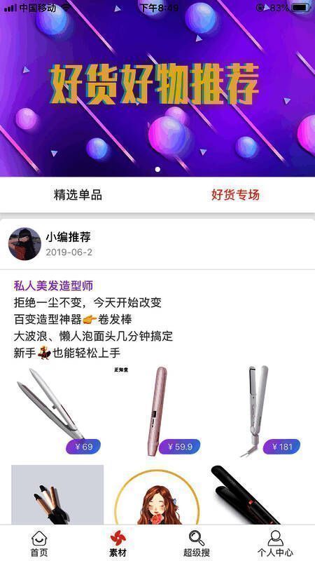 进入素材页面,超多商品的推广素材可直接复制使用;