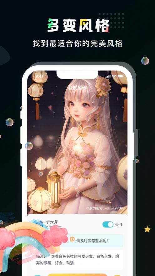 《AI梦工厂》是一款画风自由、风格多元的移动端AI绘画创作工具,覆盖厚涂、日系二次元、赛博朋克、水墨国风等十余种主流艺术风格。零美术基础用户仅需输入文字描述(如“穿机甲的猫耳少女,霓虹雨夜,8K超清”),即可在3–8秒内生成高还原度图像;更支持图生图微调、多轮迭代优化与风格迁移,真正实现“所想即所得”。上线半年DAU突破120万,用户自发创作内容日均超47万张,社区UGC活跃度居同类应用榜首。