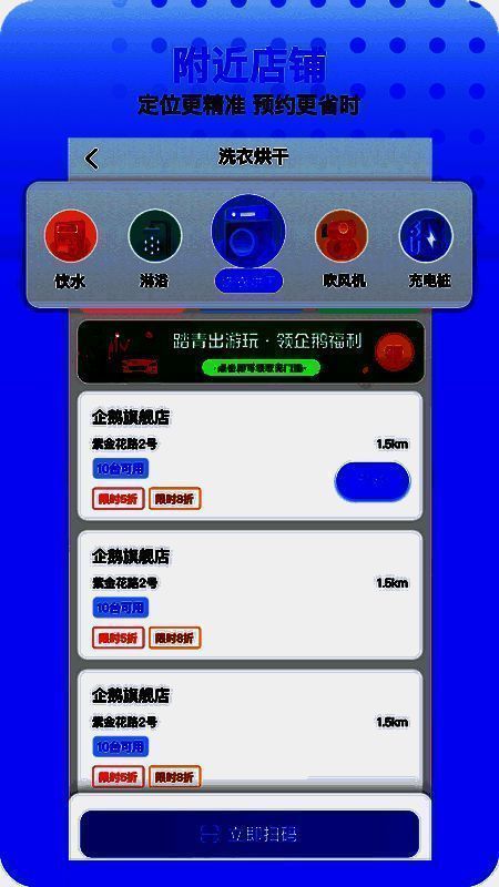 4、在页面选择洗衣烘干功能,就能智能搜索附近设备。