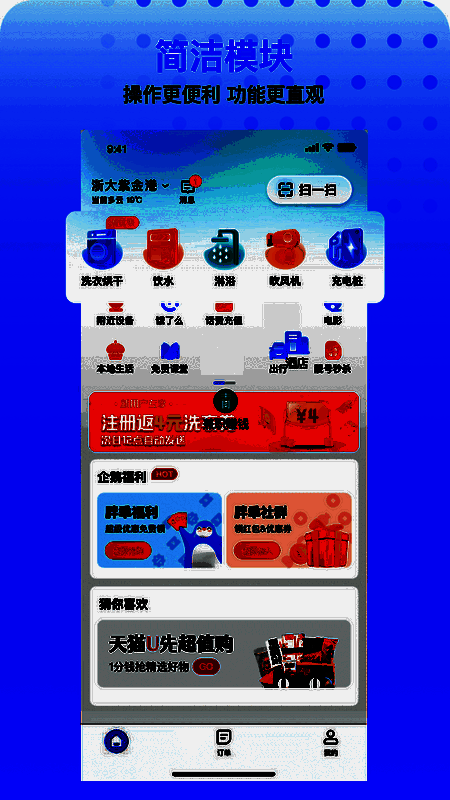 胖乖生活是一款自助共享设备控制应用程序。它内置一站式智能生活服务板块,用户能通过该 app 快速使用洗衣烘干、充电、吹风机等服务,还能进行手机充值、预订酒店、电影票、旅行等。它可让用户足不出户预订和使用附近共享设备,满足日常需求。心动的伙伴们,赶快下载体验吧!