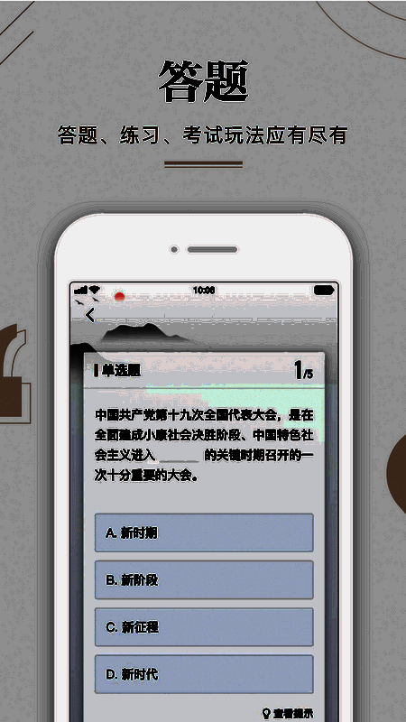 4. 在线答题:定制在线学习答题,有文字题、音频题、视频题,还有每周一答、智能答题、专题考试等,助您不断攀升新高度。