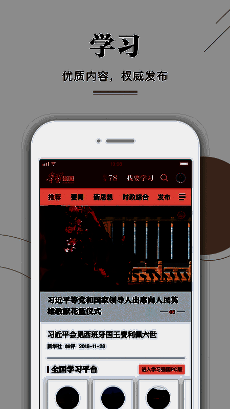 学习强国ios版是学习强国学习平台为苹果手机精心打造的客户端软件,学习资源丰富,涵盖思想、党史、慕课、文化等多方面内容,让学习更智能、更便捷,随时随地都能学!