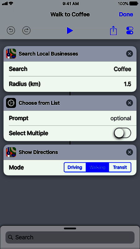 9、捷径可以从“今天”小组件或“搜索”中启动,也能让 Siri 启动。你甚至能在主屏幕中为喜爱的捷径添加应用图标。