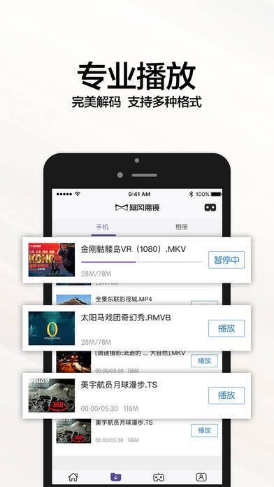 《暴风魔镜》是一款汇聚海量VR电影、全景视频和3D游戏的高清VR内容播放器。它能带来超越IMAX的大屏体验,让玩家在游戏中仿若身临其境,感受最真实的游戏乐趣,赶快下载体验吧!