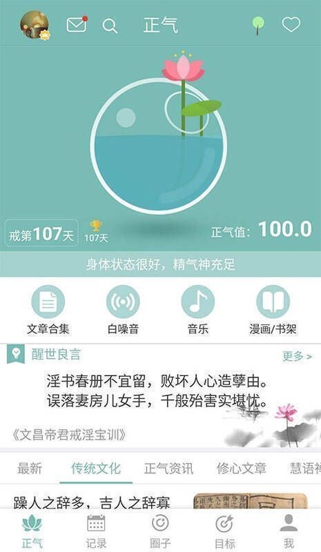 4. 丰富修心内容:除戒色功能,还提供修心文章、音乐、书籍等,助力培养感恩、孝顺等品行,提升修养道德。