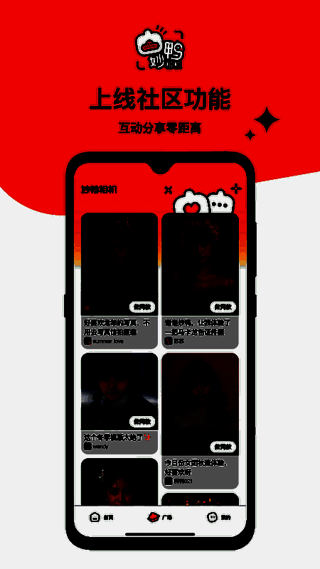 4. 强大的社区分享功能:妙鸭相机具备强大的社区分享功能,用户可将作品分享到社交平台,与更多人分享创意和灵感。
