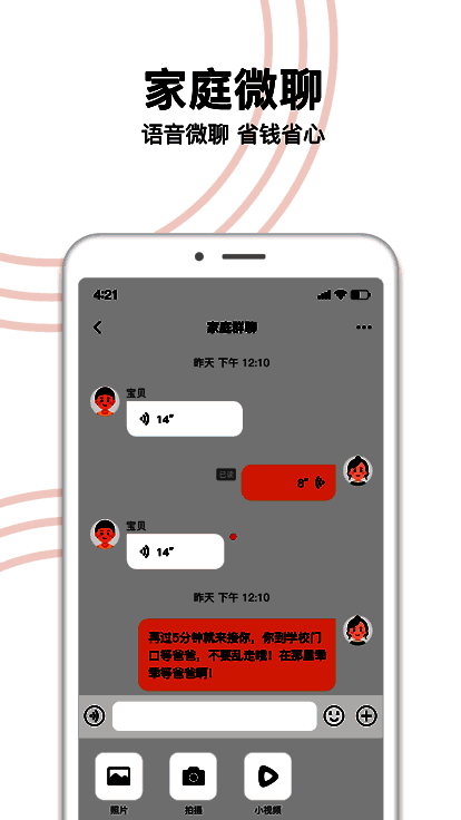- 语音聊天:内置微聊功能,实现实时语音交流,方便家长与孩子沟通。