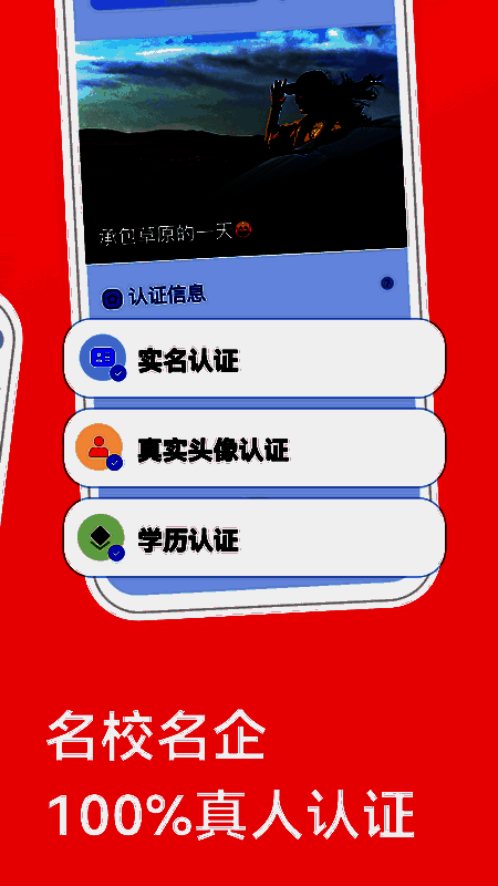 - 所有用户经实名认证后可自信交友聊天,构建可靠交友环境。
