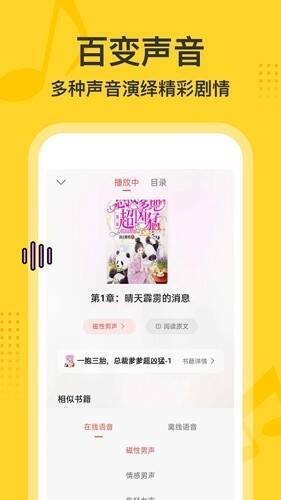 得间畅听app是一款拥有海量免费小说资源的手机平台。用户能在该平台在线阅览丰富多样的内容,涵盖爱情、穿越、校园、异世界、种田等各种题材,只有你想不到,没有找不到。软件还提供便捷听书功能,让你解放双手,躺着享受小说。