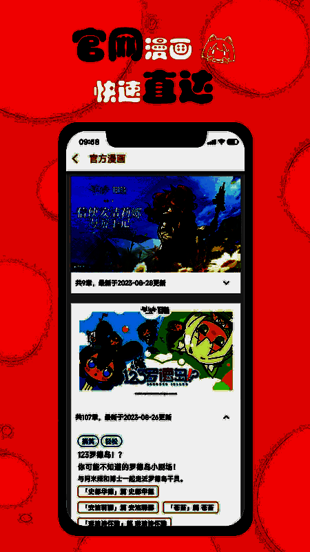 2、整合官方漫画,支持一键在线看漫画,还推荐热门创作与视频。