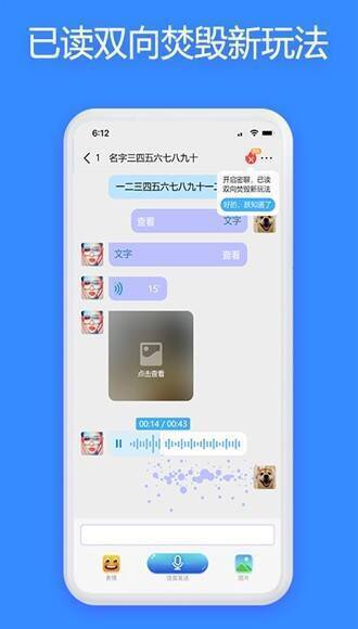 4. 随时找人聊天:随时能找到聊天对象,支持阅后即焚加密模式。