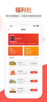 【首页】整合保险场景,帮助用户发现生活中的保障缺口;福利社为新老用户不定期提供增值服务。