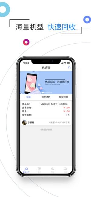 二手物品出租想赚钱,《优返租》可别错过!这款软件有海量出租资源,你还能自定义价格,让交易双方都称心如意。要是觉得不错,赶紧下载用起来!