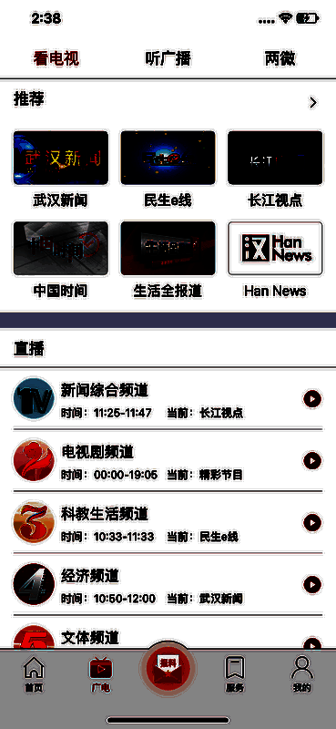 5、直播:可观看武汉本地电视节目和5套广播节目。