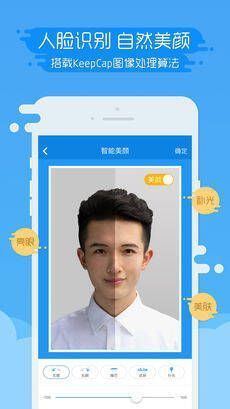 【自然美化】采用KeepCap美颜技术,拍照后一键自然美化人脸,可微微放大眼睛、缩小嘴巴、美化皮肤,让眼睛更有神,还有补光功能,使证件照更专业、美更自然。