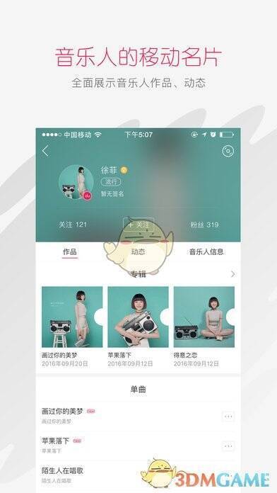 1、音乐人拥有专属主页,能展示信息、单曲、专辑、动态、演出、视频等内容,还能分享主页。