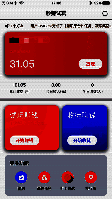 3. 邀请的用户越多,收益就越高。若朋友参与试玩,自己还能获得相应佣金。