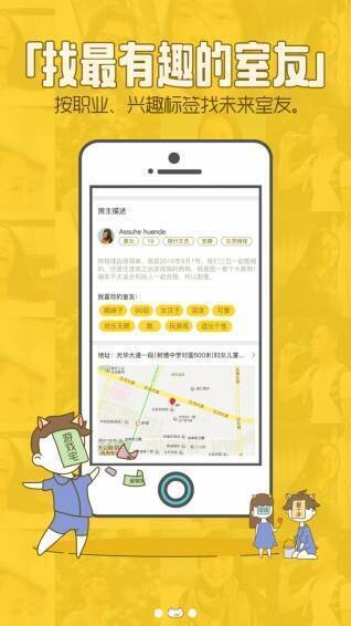 2. 兴趣匹配:用户可在个人信息打标签,方便按兴趣找室友和房源。