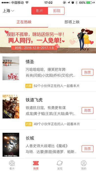 随时随地畅快购票,9.9元、半价等惊喜优惠天天有;