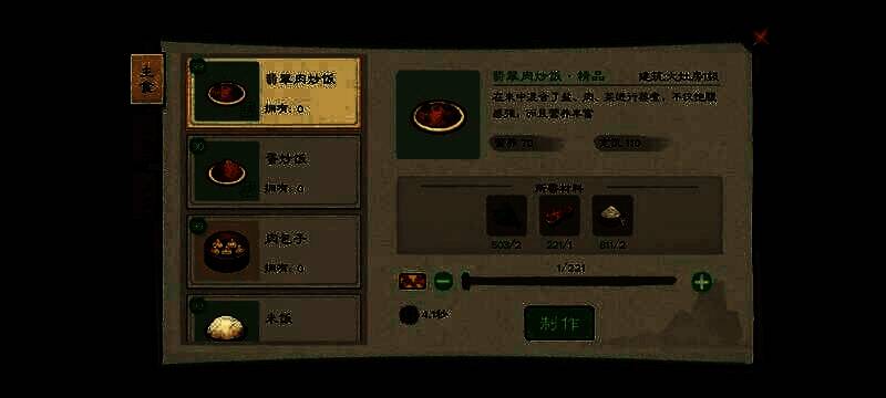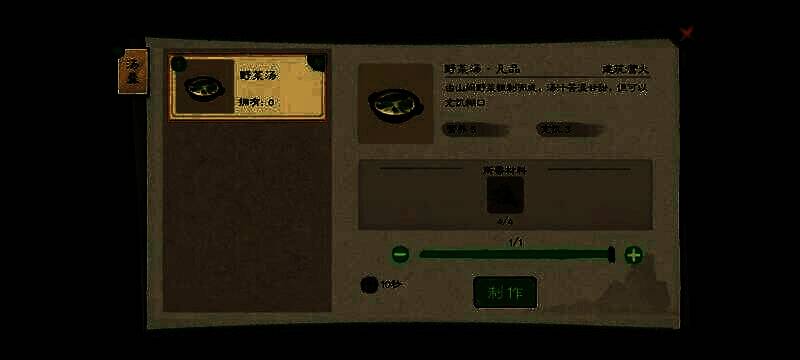 我们这里直接制作野菜面,野菜汤的话,太亏了,要的食物多,加成还少,具体价值大家可以看图,上面的营养与充饥