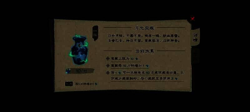 这个是有大用的,他每十分钟会弹下一滴月光水,最多存十滴,月光水能用来缩减建造时间