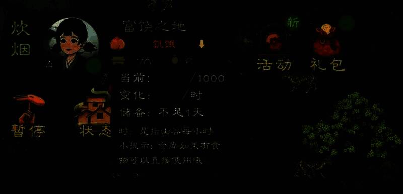 储备的话就是你的存粮,看你够吃几天,饥饿值高的话,村民寿命会变低的,干活效率也会变低,就是不知道会不会被饿死了