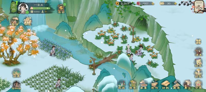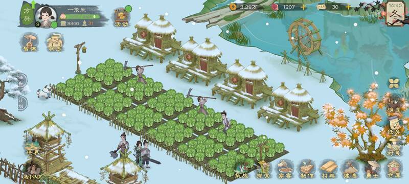 桃园2是有季节环境机制的所谓春夏秋冬,大风雨雪,比如说你冬天就更容易感冒,夏天更容易中暑啥的,在不同的季节环境下,生的病也不同,病情程度也不同,有就是没地方住,在夜晚的时候会着凉,这个时候我们就需要建造更多的房子