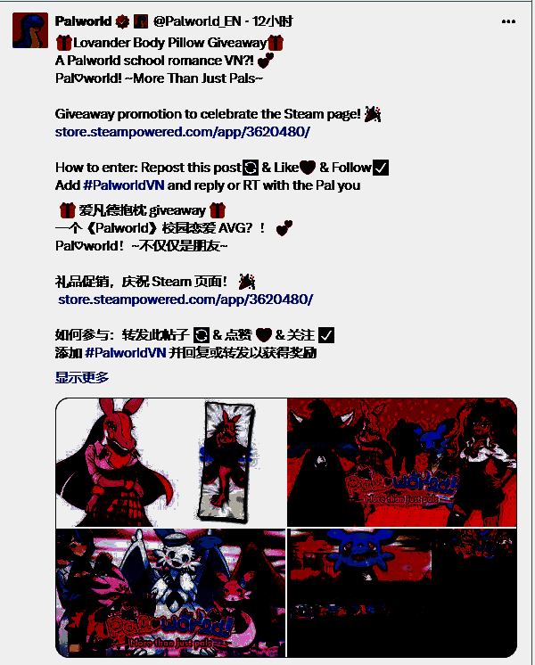 开发商Pocketpair的通讯总监兼发行经理John'Bucky'Buckley也发帖说:“你们一直都在问,所以现在就给你们——《幻兽帕鲁》恋爱模拟游戏的Steam页面上线了,还有一段展示更多角色的新预告片。好主意?坏主意?谁在乎!总会有人会高兴的!”