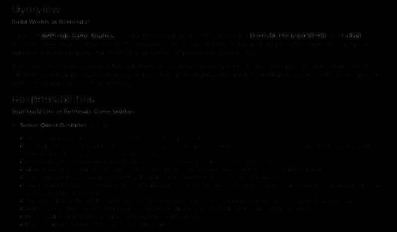 最近B社发布高级任务设计师和助理任务设计师职位招聘,要求应聘者对开放世界游戏很熟悉,拥有开发3A游戏的经验,最好玩过《上古卷轴5》。他们的工作是使用专有工具创建开放世界内容,讲述引人入胜的故事和分支对话。