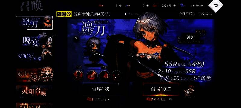 普通券,十连即可抽,不建议一次性抽完,每天第一发10抽可增加出ssr概率(亲测有效)
