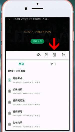 3、选择免费字样的视频,点击播放,点击这里的下载按钮,挑选需要缓存的课程即可。