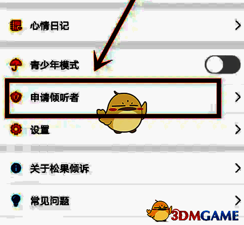 1、在松果倾诉app页面,点击右下角我的,选择成为倾听者。