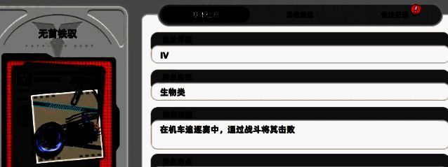 无首铁驭:身穿一件黑色的机车服,会骑在一辆燃烧火焰的机车上,然后在晚上到处的游荡会惩戒。所有深夜飙车的人一旦被追上之后就会直接将其吞噬。对于破坏机动车还是比较执着的,还会拥有一个巨大的镰刀,可以形成斩击。
