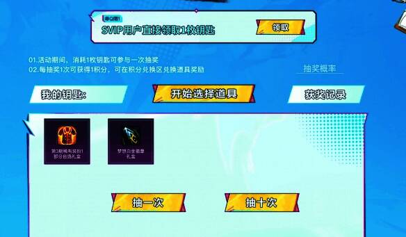 3、要是可以在该页面用来参与抽奖,如果是SVIP用户可额外领取1枚钥匙;