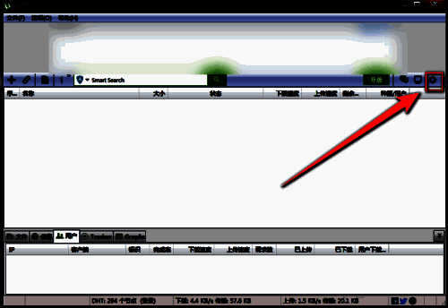 第一步:在uTorrent窗口中,点击工具栏上的“齿轮”图标。