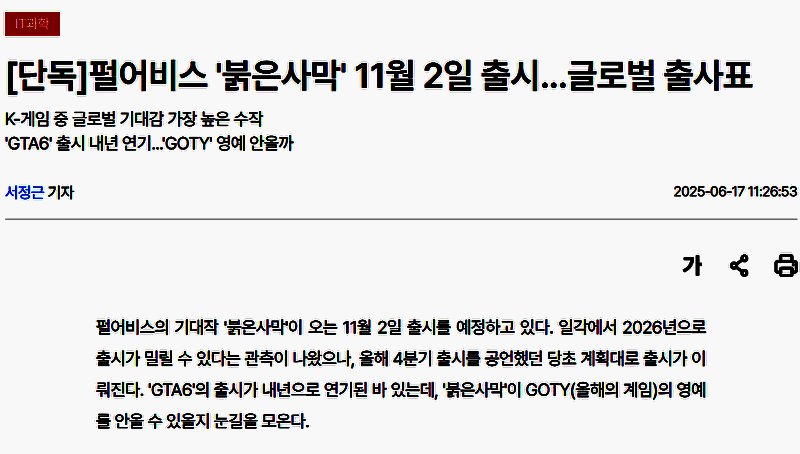 此前有消息称,索尼曾试图争取《红色沙漠》独占发行权,但被Pearl Abyss拒绝。而《红色沙漠》原计划与《GTA6》同期推出,但随着《GTA6》延期至2026年,业内认为《红色沙漠》在今年内发售会非常轻松。