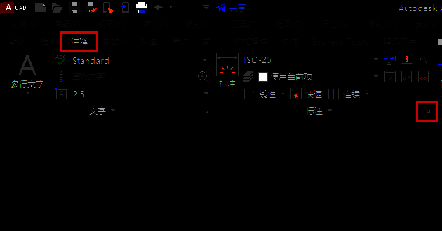 第二步:点击【注释】里面的【标注】后面的【小箭头】,如图所示。